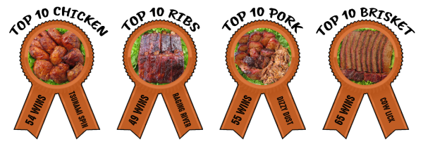 The contests have four categories: • Chicken • Ribs • Pork Shoulder • Beef Brisket